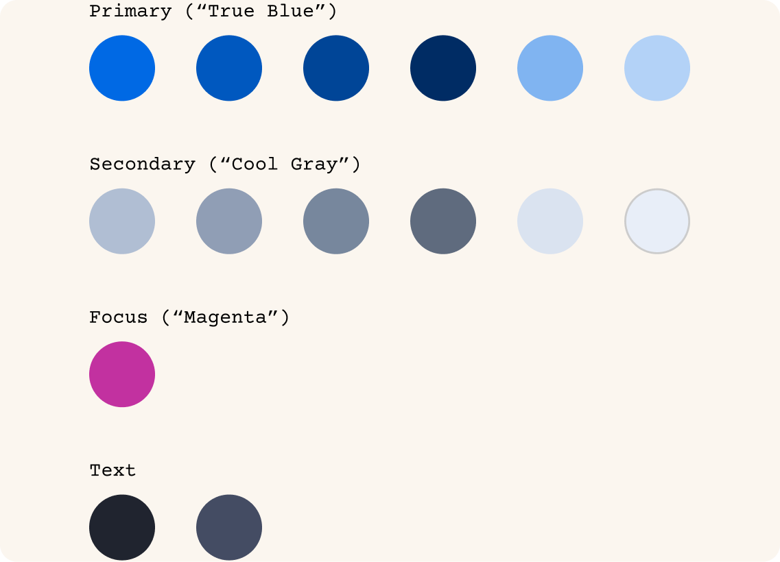 The first step of this work was for me to define color palettes that would support the design of initial components.