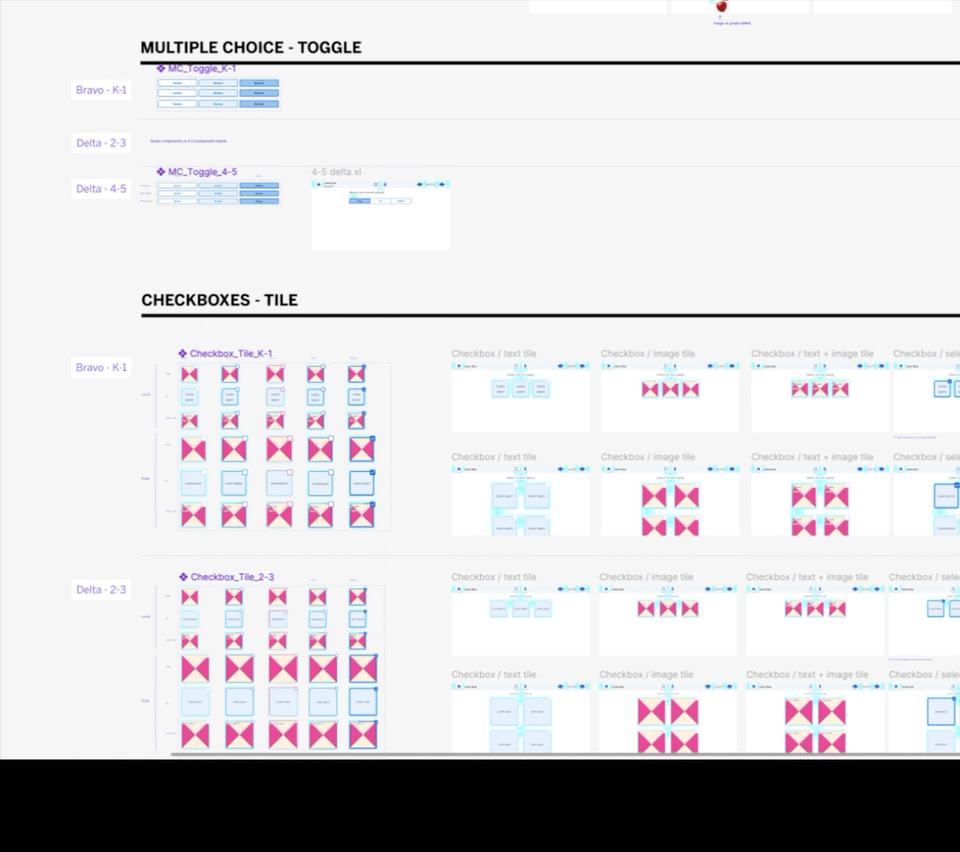As we designed Figma components for each grade band (K-1, 2-3, 4-5), we also partnered with a user researcher to batch test multiple components at a time within a single prototype.